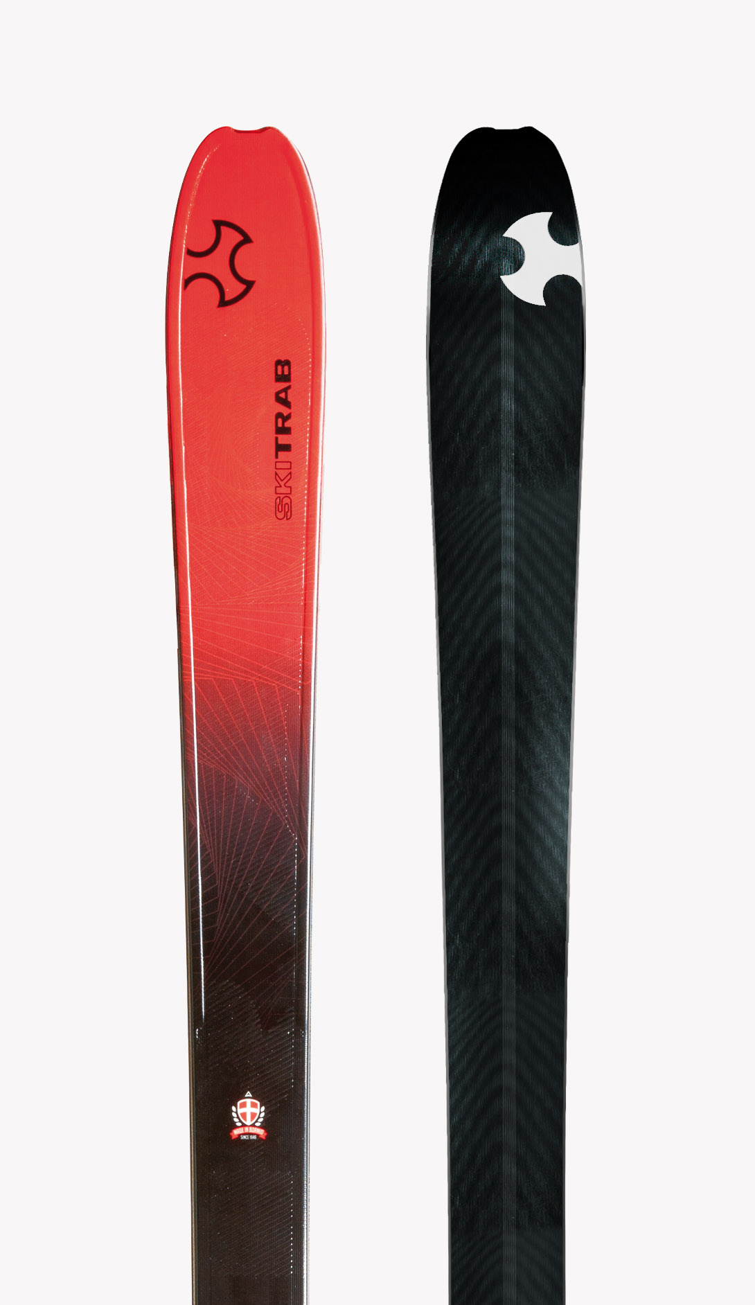 Bastone in Ergal e Carbonio/Kevlar 2 pezzi con punta widia tonda e papera Evo orientato per lo scialpinista alla ricerca della leggerezza e della rigidità in un bastone regolabile in altezza.